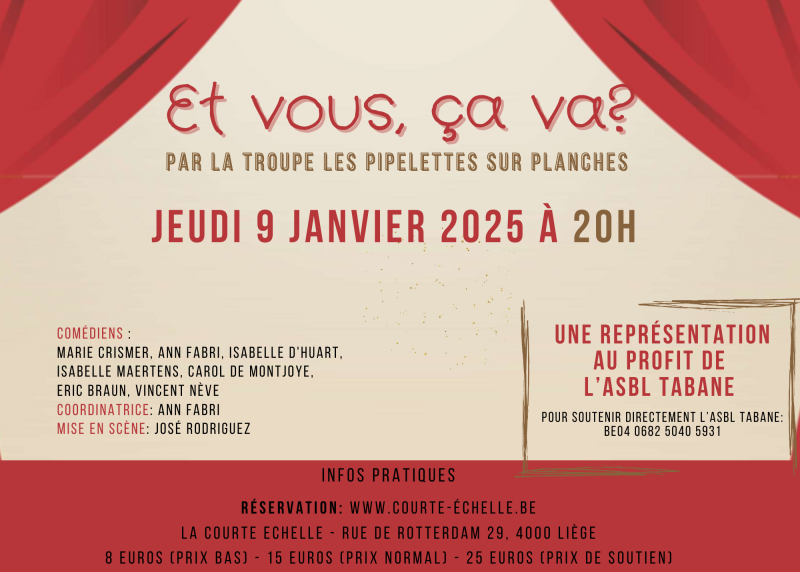 Le bar est ouvert une heure avant et deux heures après le spectacle. Une urne pour vos dons sera à votre disposition.