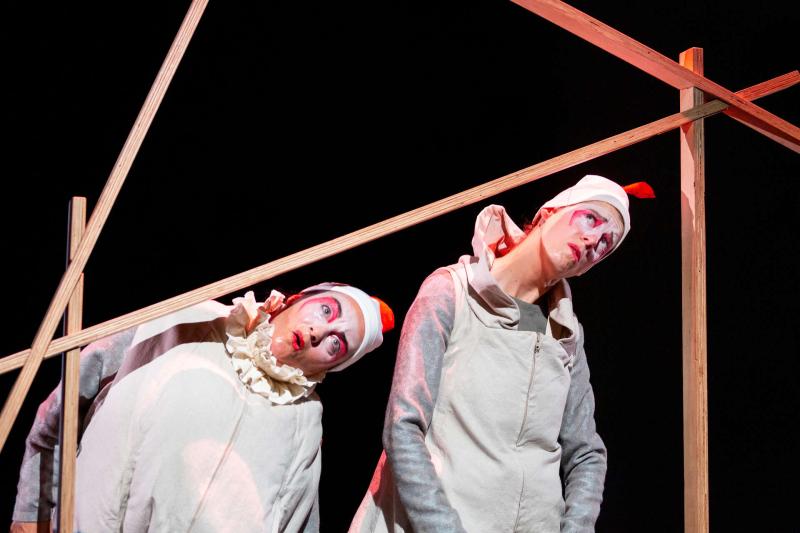 Comme l’enfant, ce duo drôle et touchant s’amuse à tester, il tricote et détricote des sentiers. Les planches de bois, matériel brut, laissent place à l’exploration et surtout à l’imaginaire.