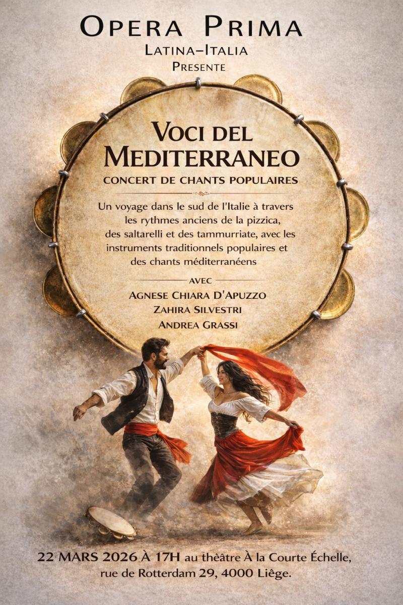 Un voyage dans le sud de l'Italie à travers les rythmes anciens de la pizzica, des saltarelli et des tammurriate, avec les instruments traditionnels populaires et des chants méditerranéens.